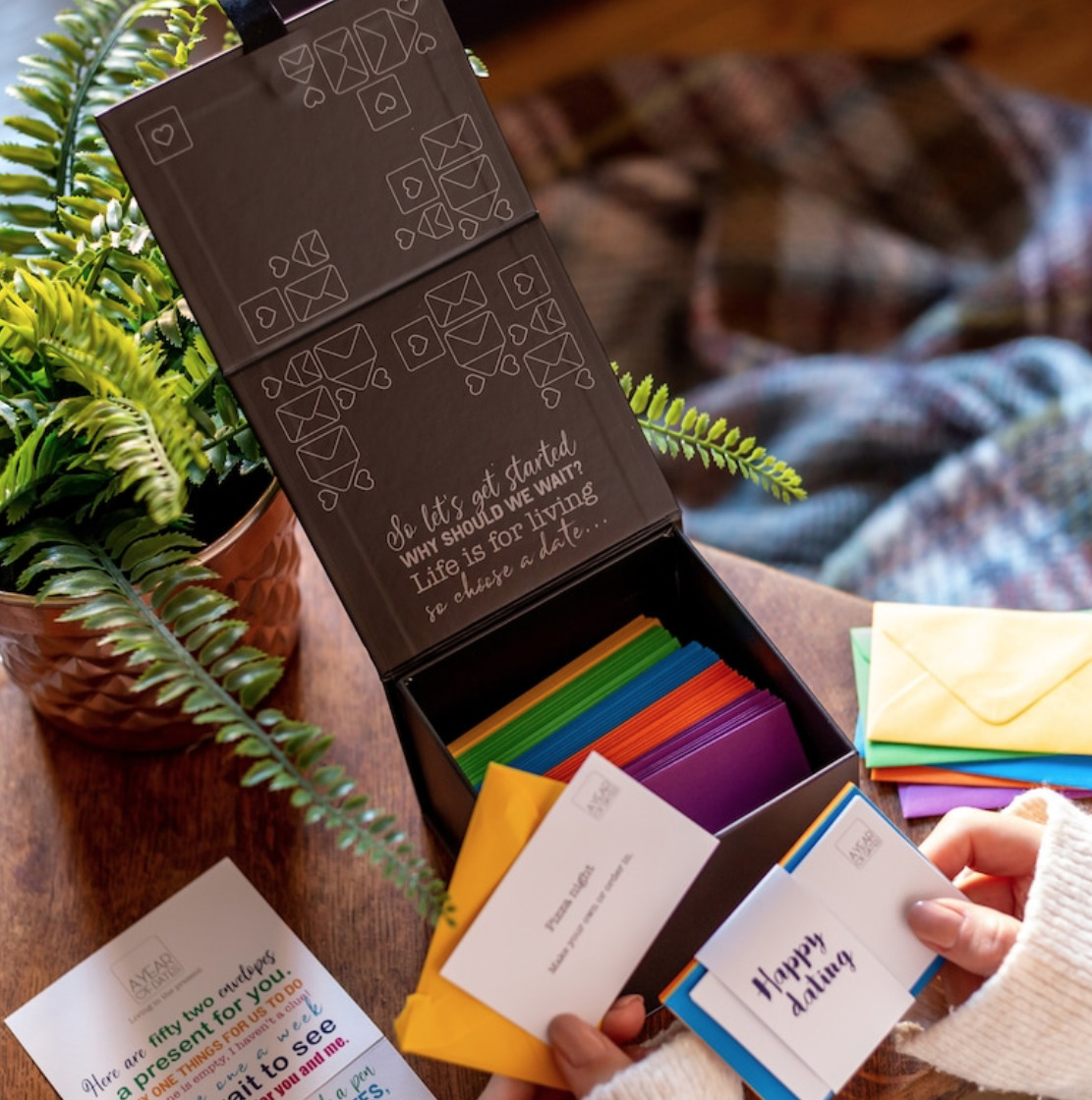 A box of date nights! That is excellent as a result of on the uncommon instances we’re on a date, we’re like, “uhhh… what ought to we do?” after which we go to dinner and stroll round Goal.